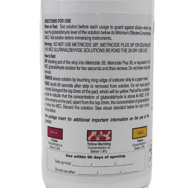 60 count – MetriTest™ 1.8% is a glutaraldehyde concentration monitor for testing activated glutaraldehyde solutions with an MEC of 1.8%.
